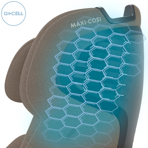 The always on, always activated G-CELL structure is built into the car seat's side panels and headrest, spreading the impact and reducing injuries in the event of a side collision.