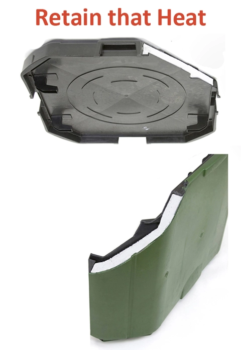FOAM FILLED SIDES, LID, DOORS, HOLD IN THE NATURAL HEAT