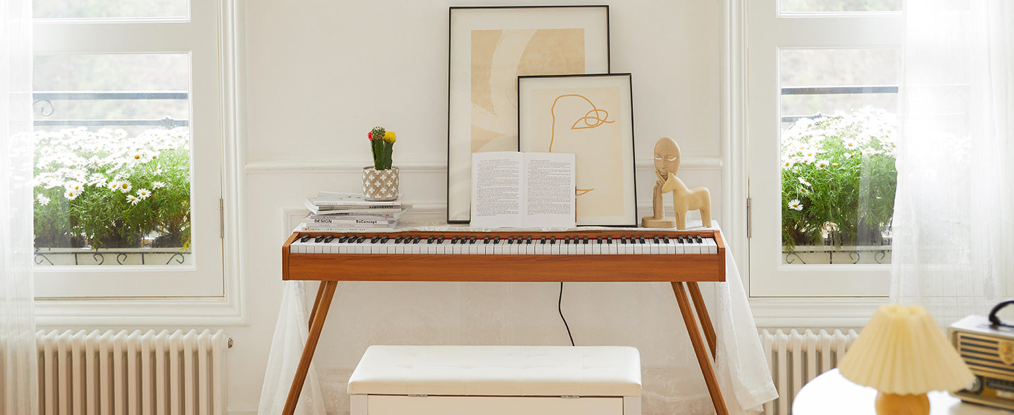 Beautiful wood finish color, an environmentally friendly and odorless process, the digital piano is also a warm vintage-modern artistic decoration at home.