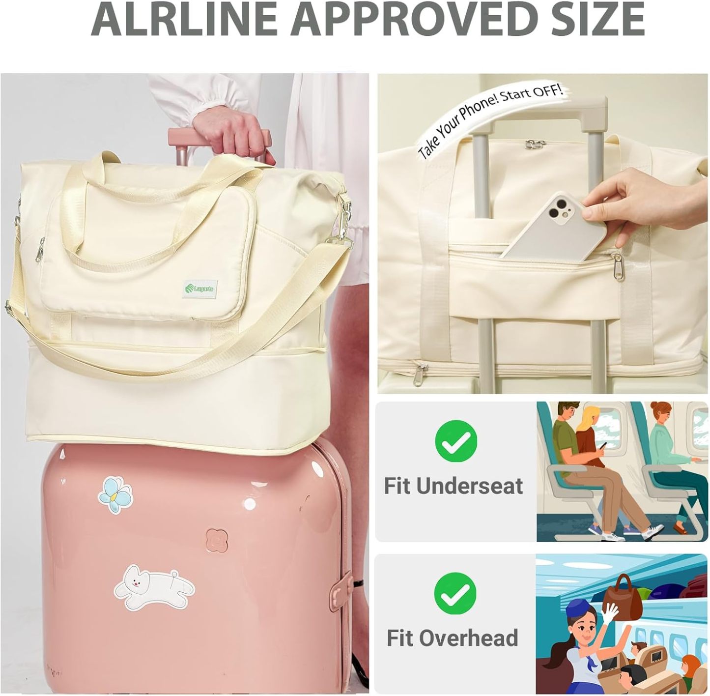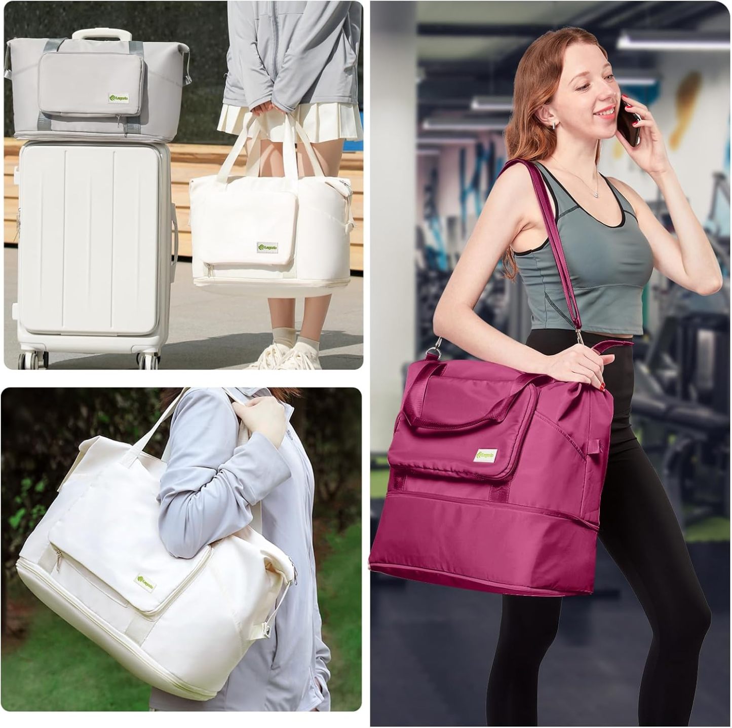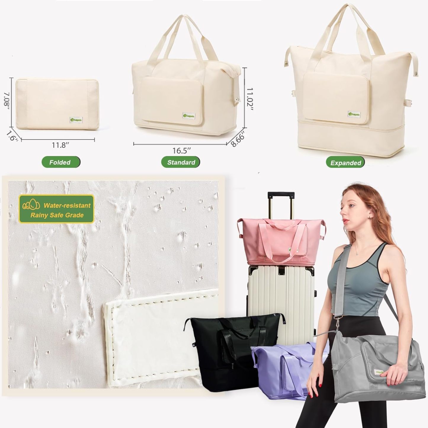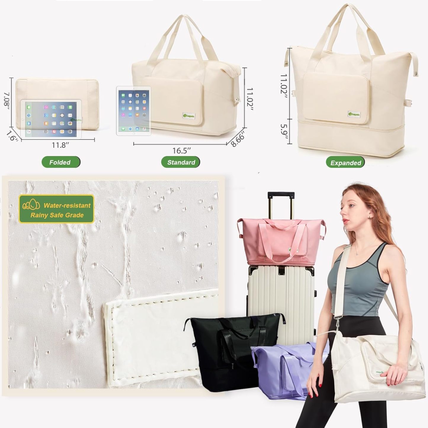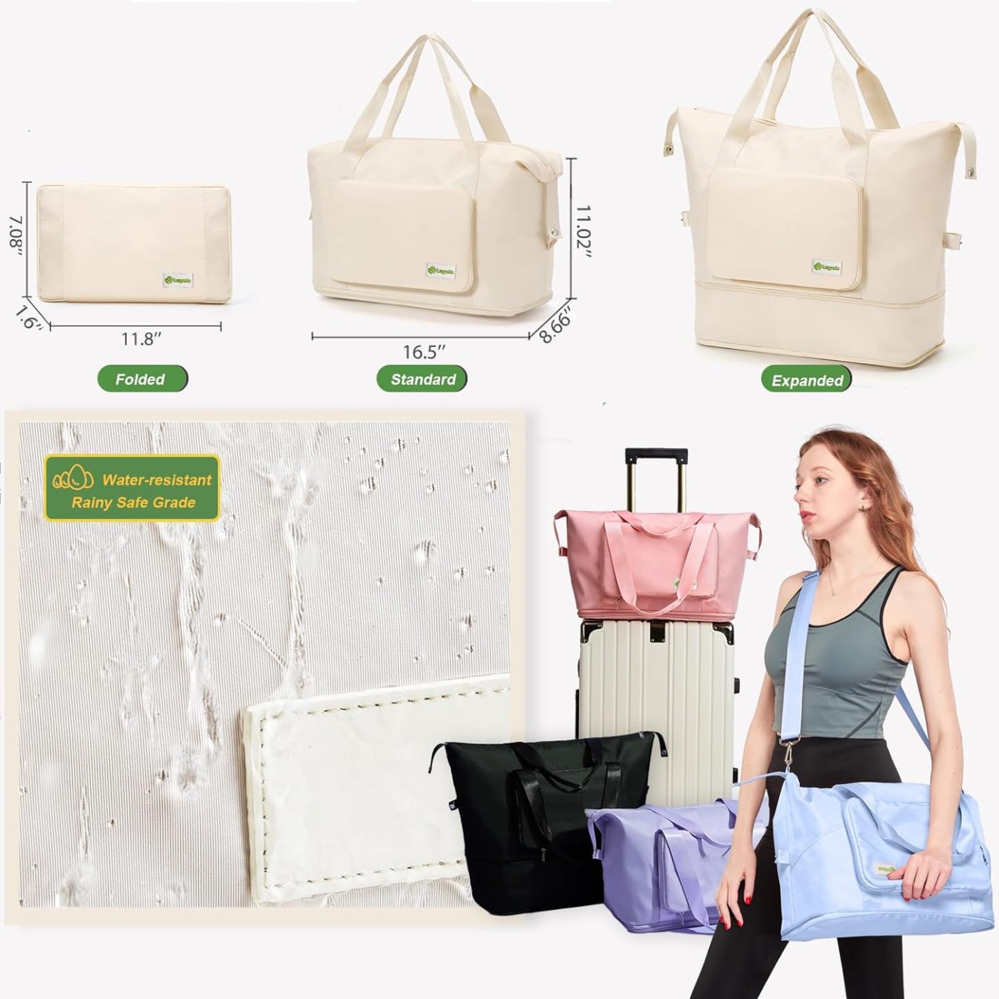 Foldable Travel Duffel Bag for Women, Water Resistant Personal Item/Carry Bag, Overnight Weekender Bag with Wet Compartment