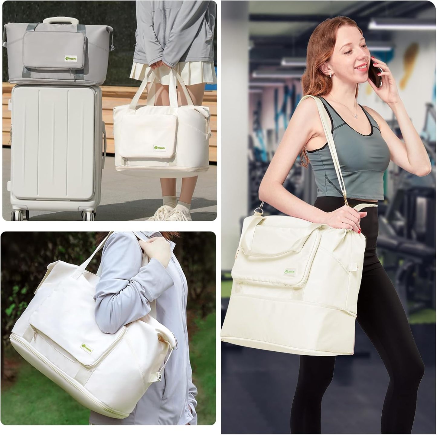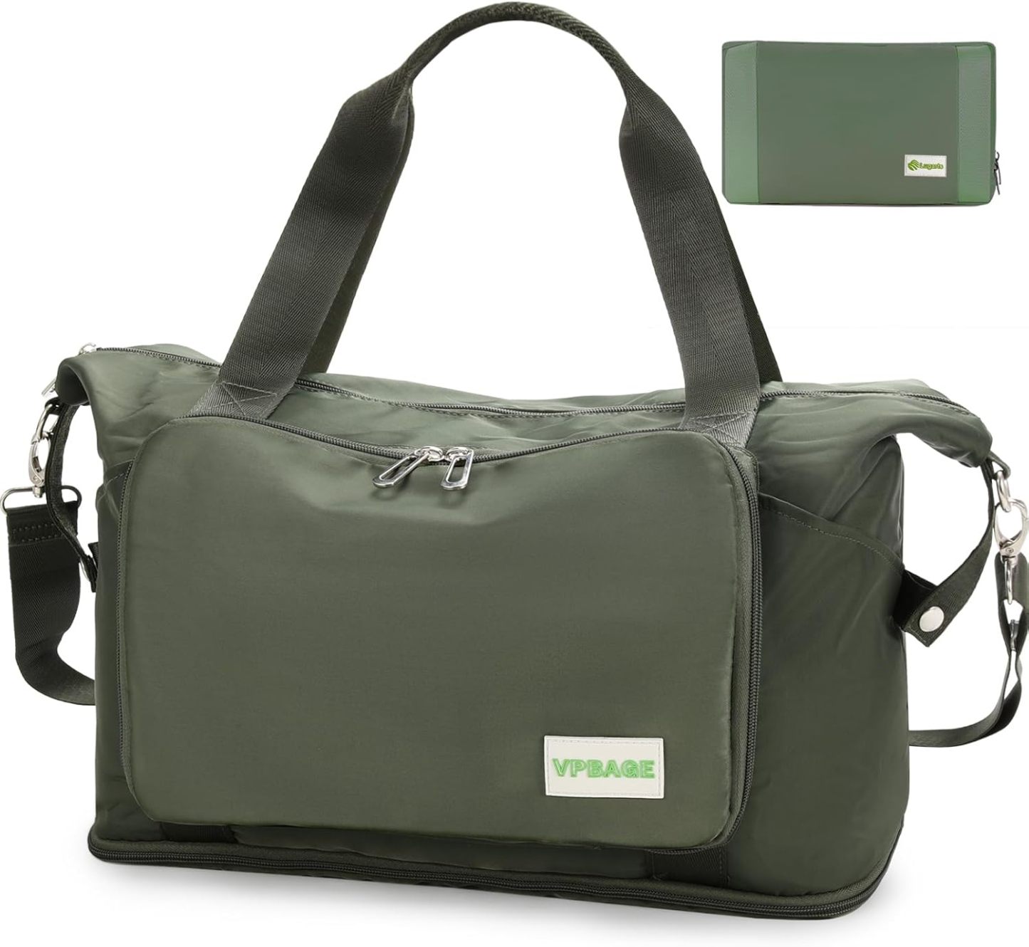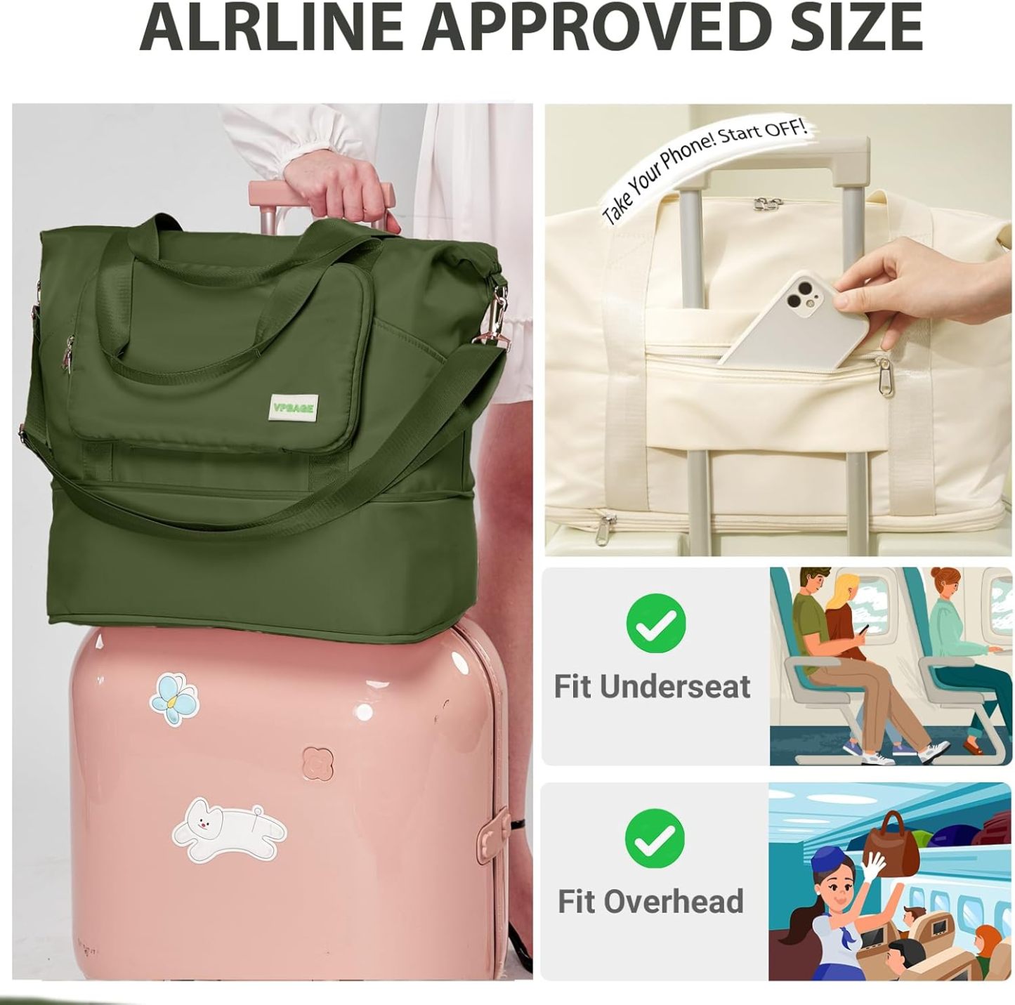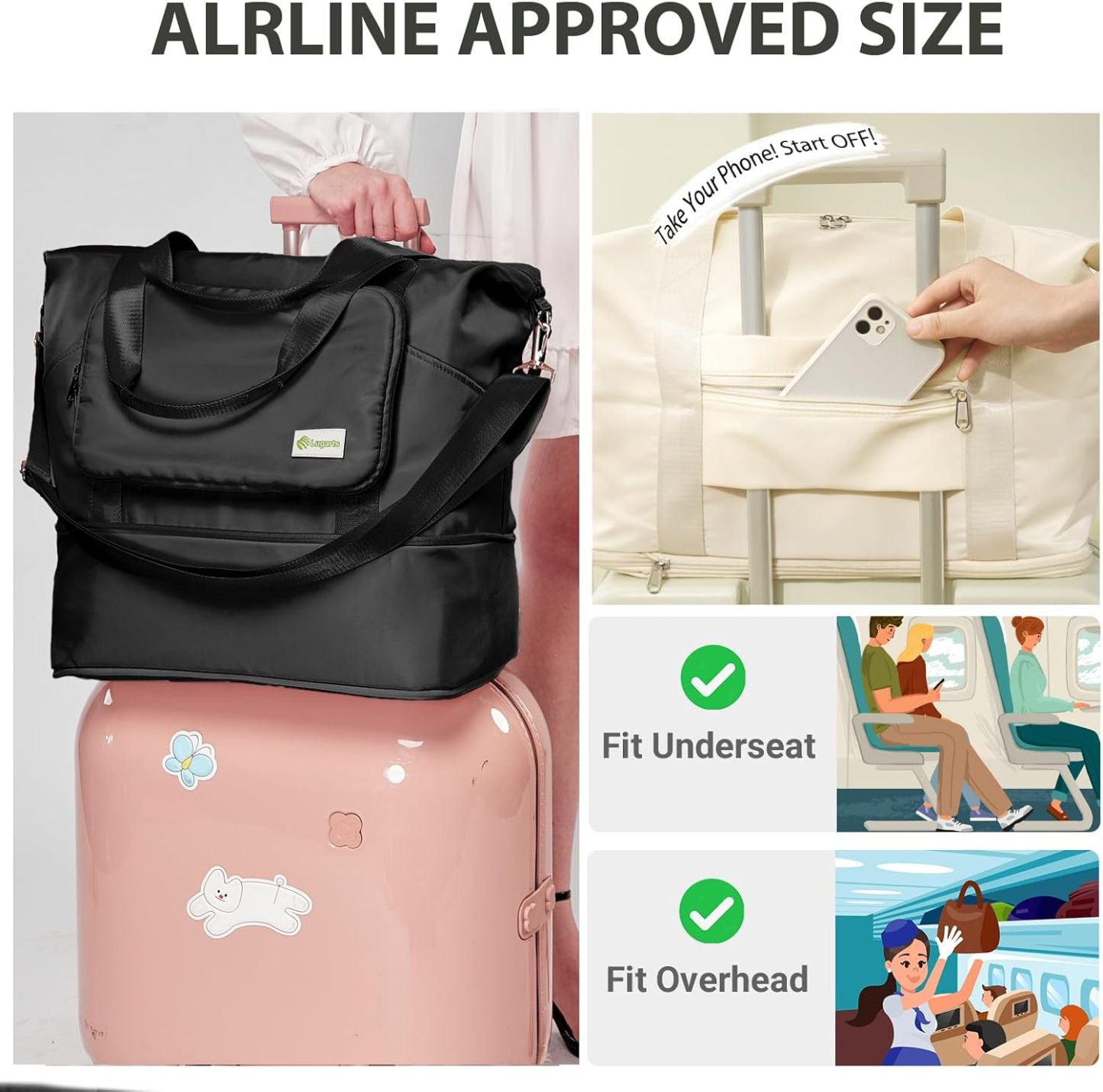 Foldable Travel Duffel Bag for Women, Water Resistant Personal Item/Carry Bag, Overnight Weekender Bag with Wet Compartment