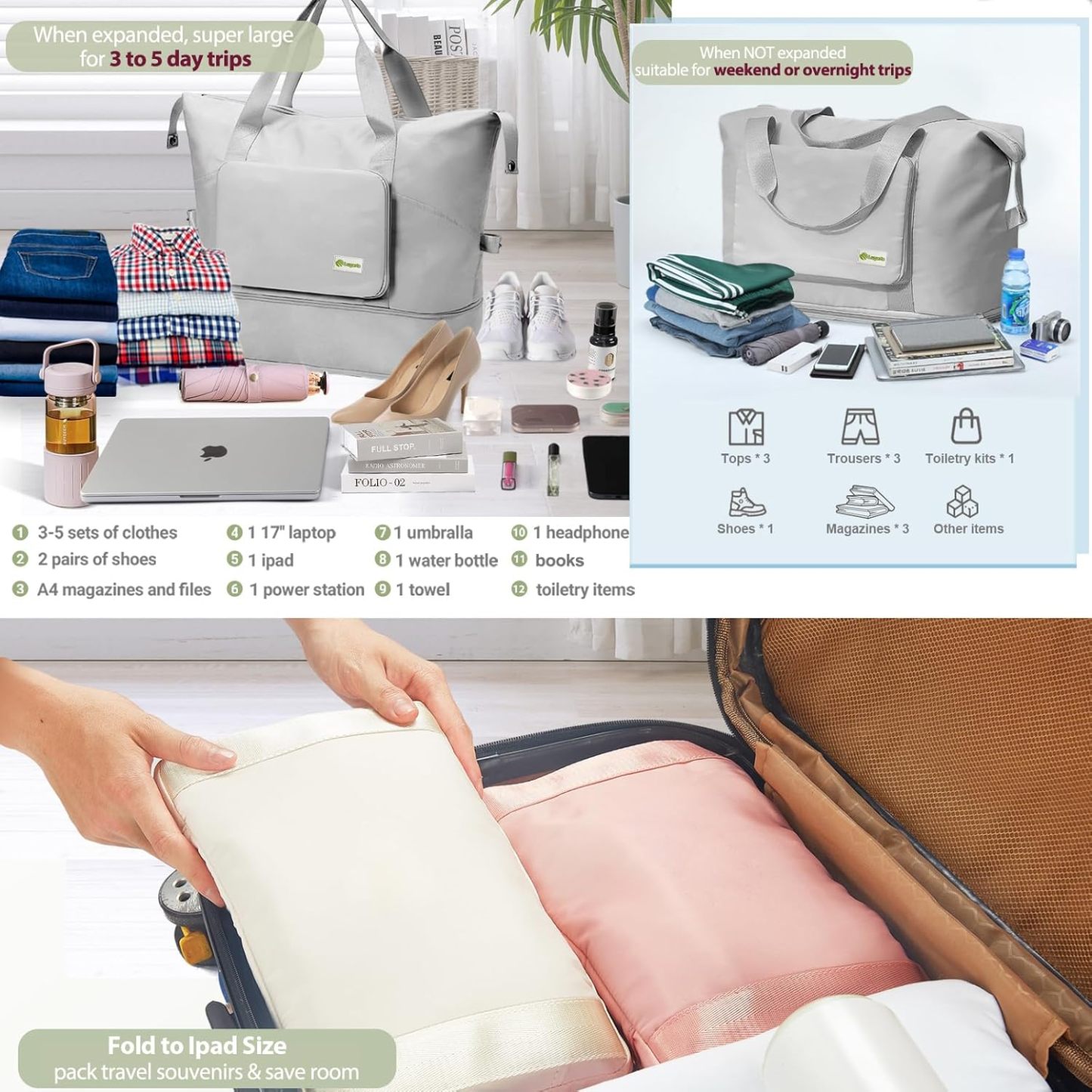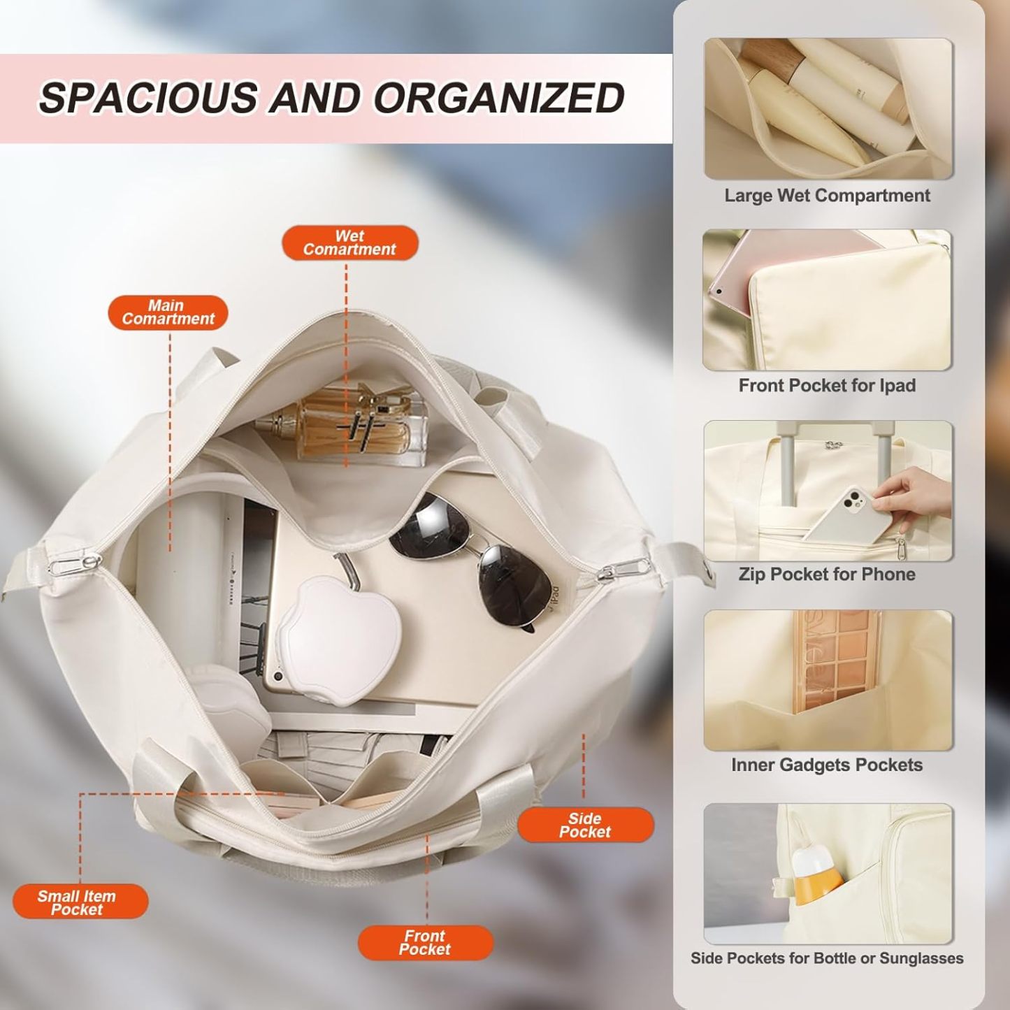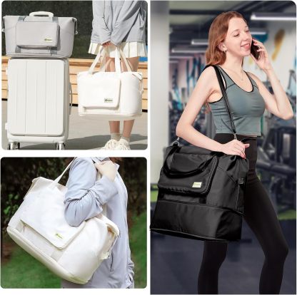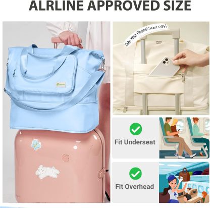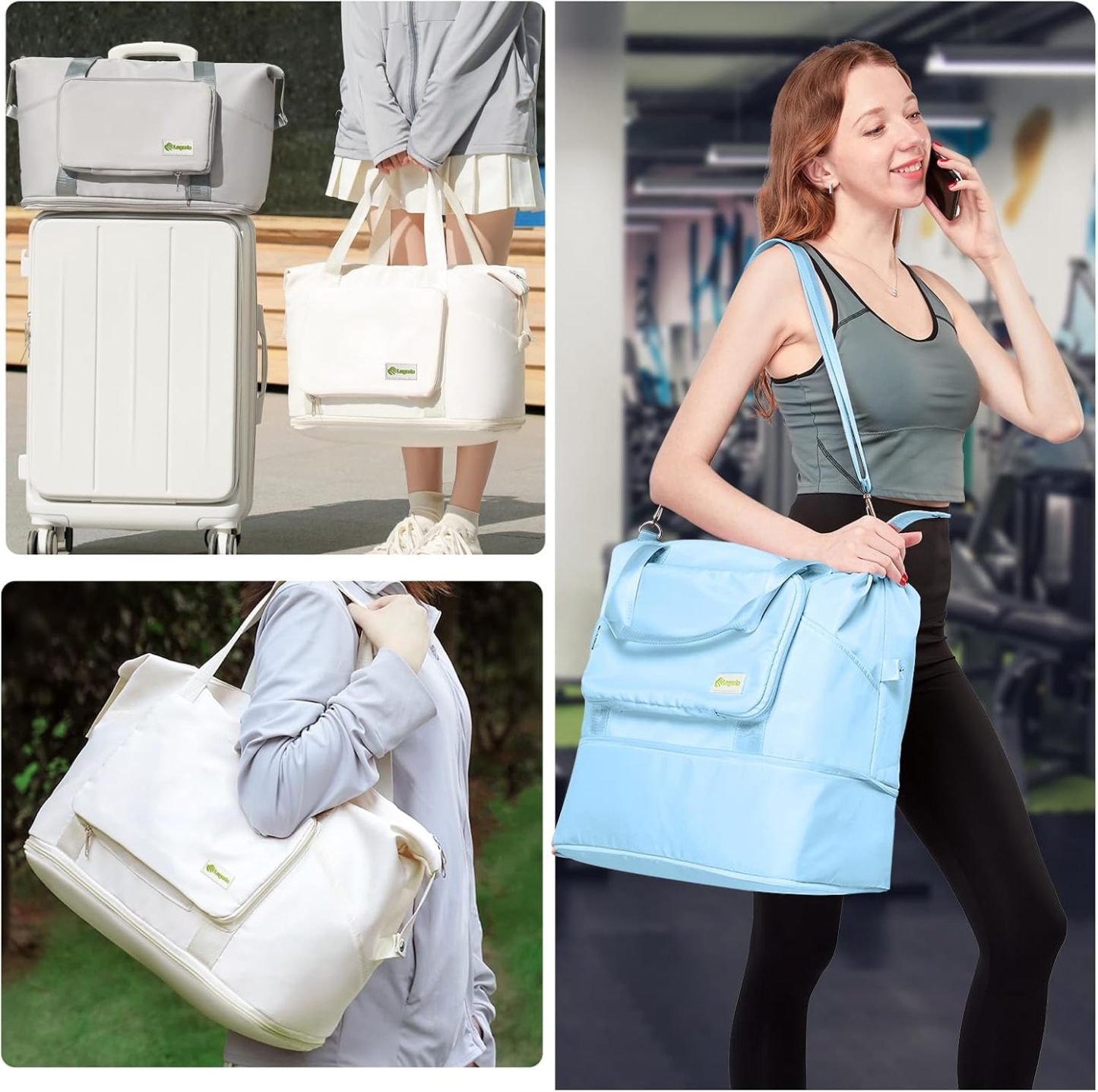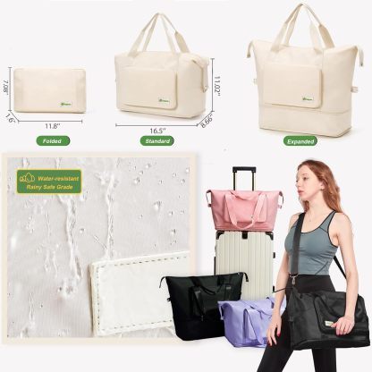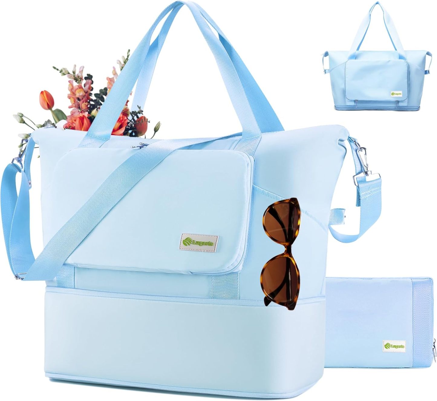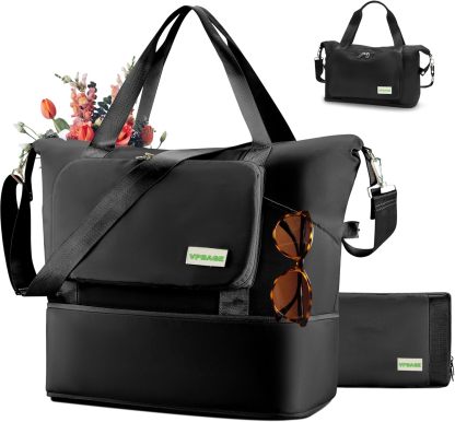 Foldable Travel Duffel Bag for Women, Water Resistant Personal Item/Carry Bag, Overnight Weekender Bag with Wet Compartment