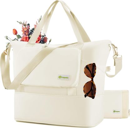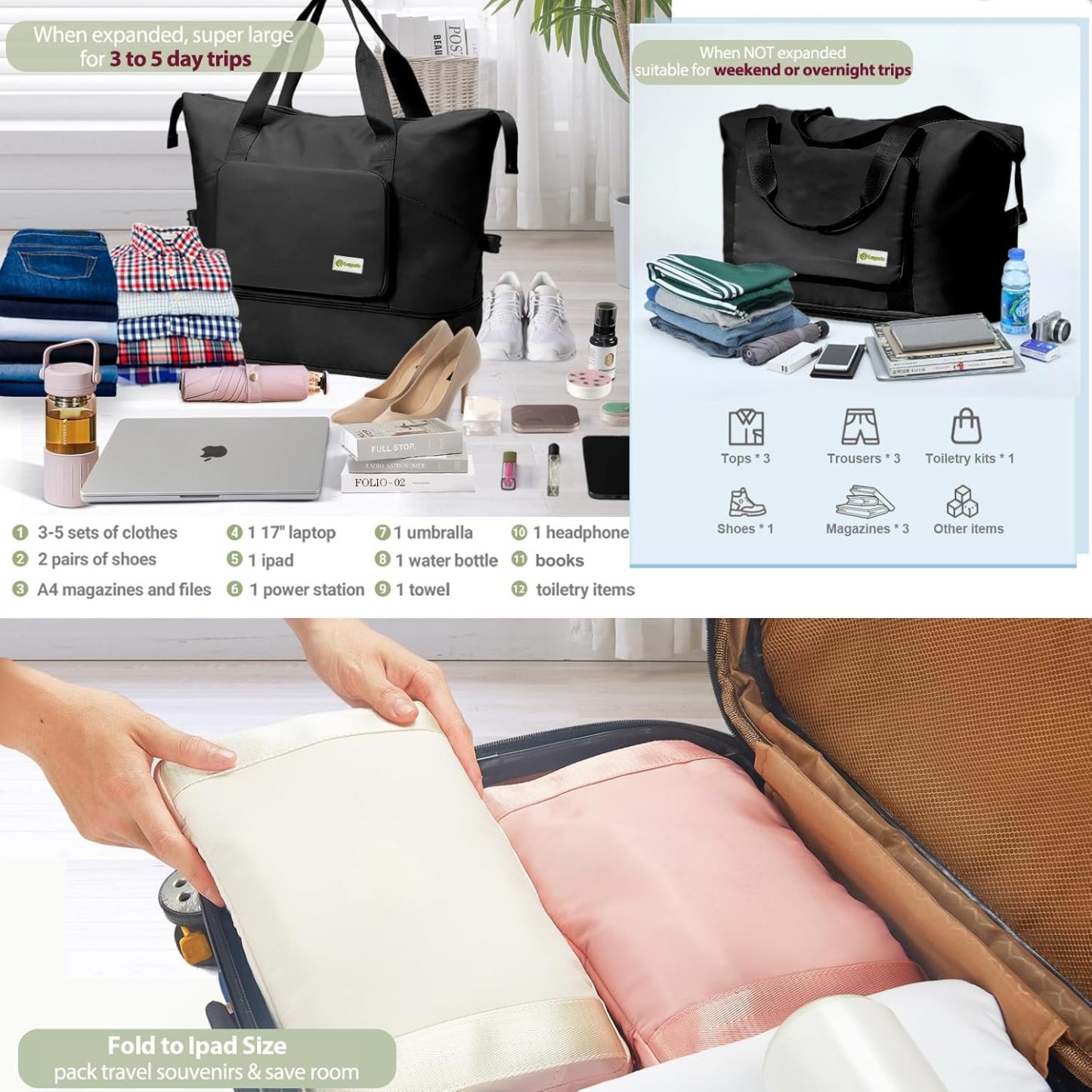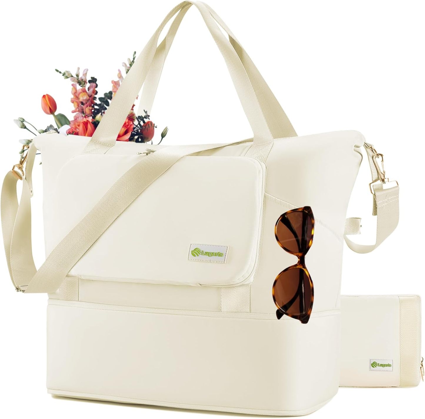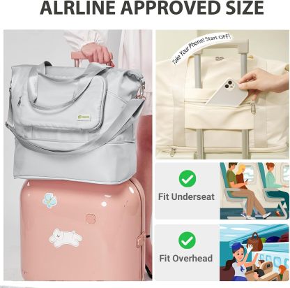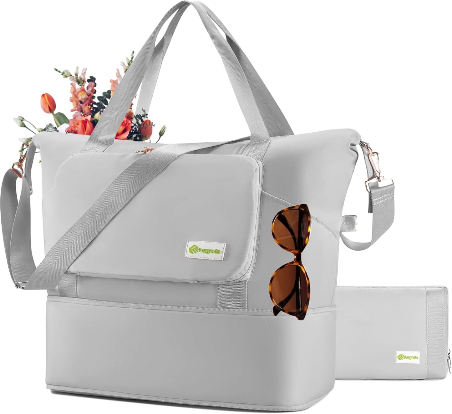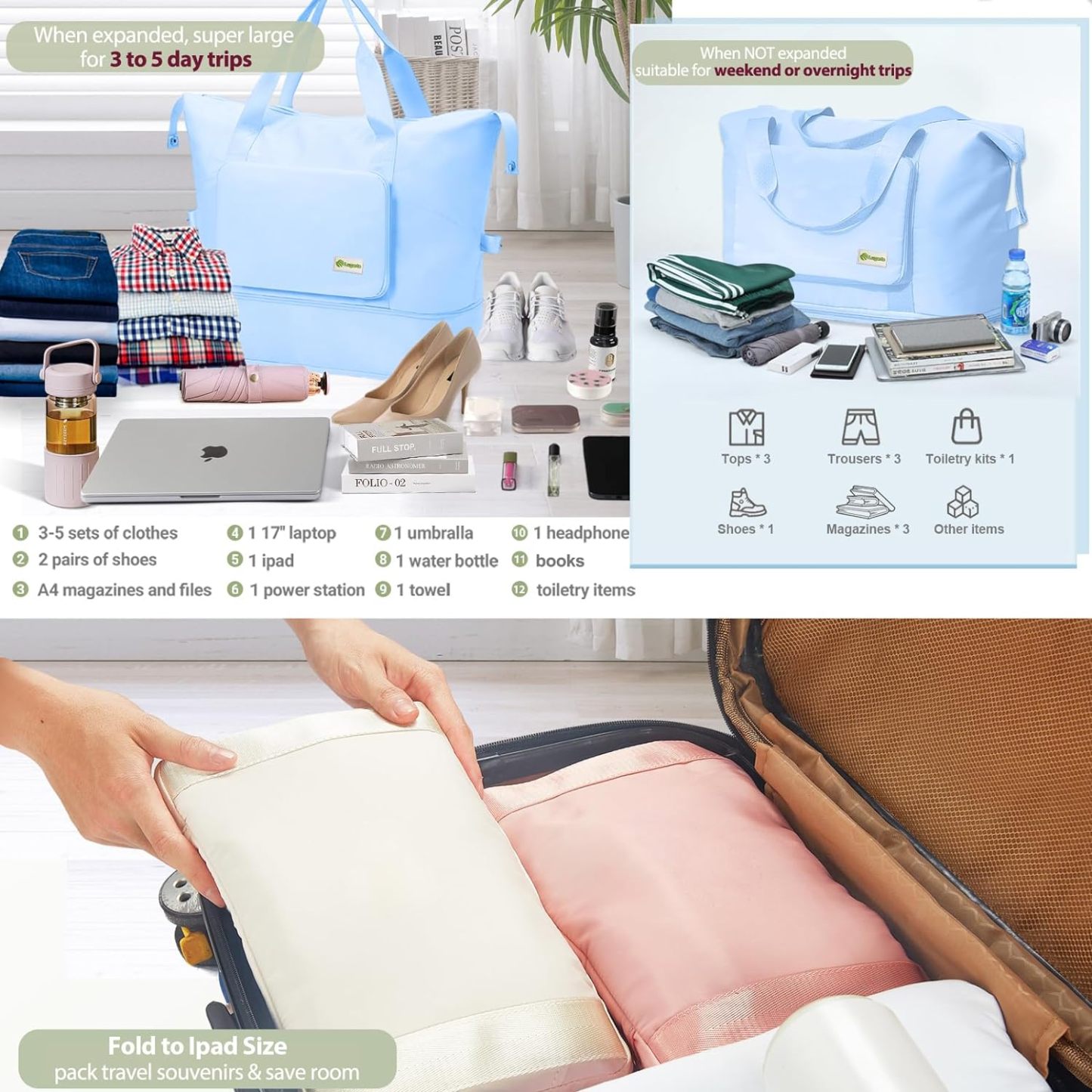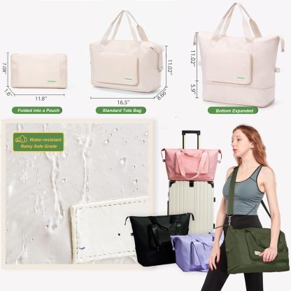 Foldable Travel Duffel Bag for Women, Water Resistant Personal Item/Carry Bag, Overnight Weekender Bag with Wet Compartment