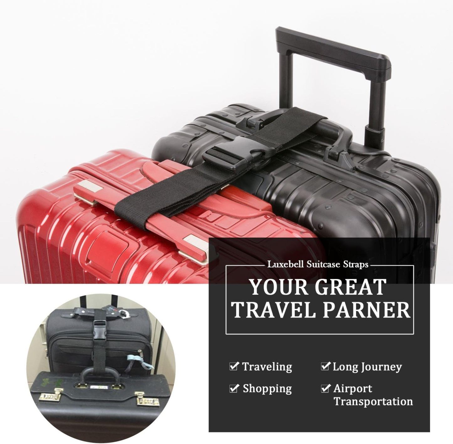 Luxebell Add A Bag Luggage Straps, Suitcase Belt Travel Accessories 2-Pack (39.3inches)